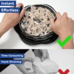 - 【Anti-Skid Base】Shredded chicken tool is fitted with non-slip adhesive strips that add stability and keep the meat shredder machine in place during use. This ensures comfortable and easy operation even during heavy use.