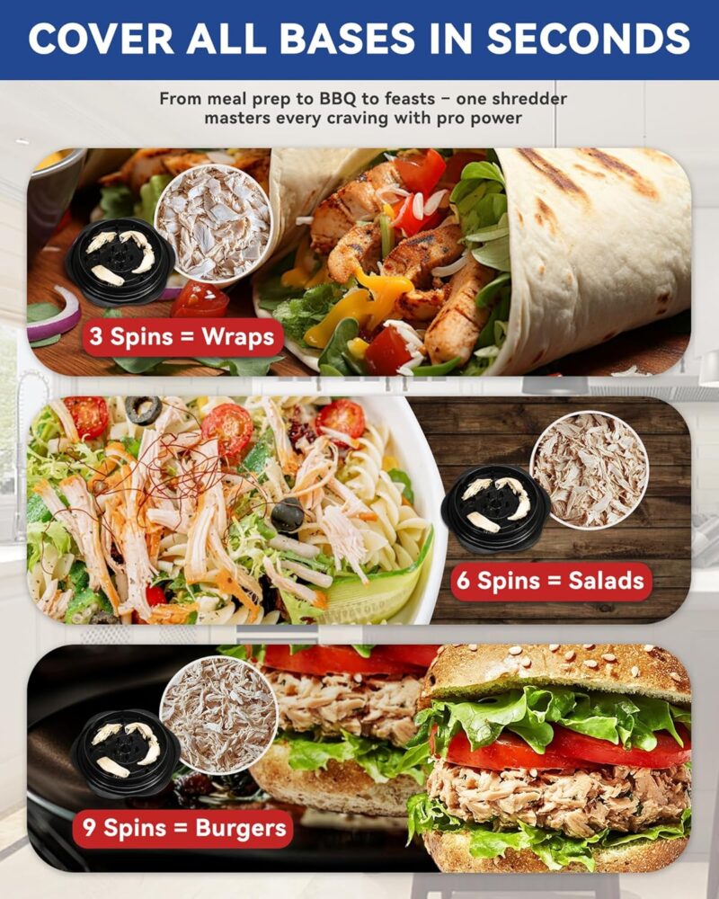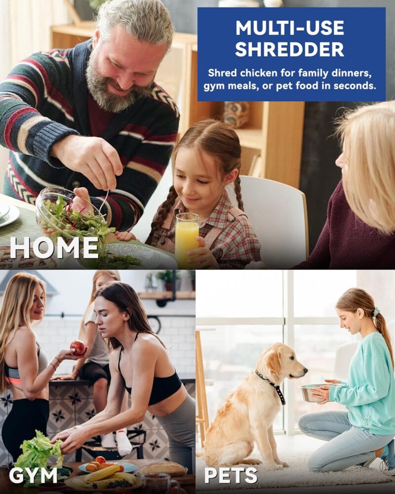 - 【Great Kitchen Helper】Perfect for fitness enthusiasts, barbecue lovers or those who love to cook, this meat grinder effectively shreds chicken, pork, beef and other vegetables, widely used for tacos, quesadillas and BBQ pork, tuna salad, buffalo chicken salad, casserole dishes. In addition, pet lovers can use this meat slicer to shred chicken for pet food. It makes an ideal gift for family and friends on any special day.
